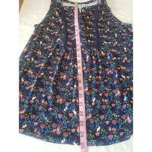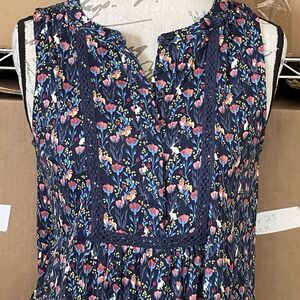Loft Womens Blouse Sz XS Floral Trim Popover Mid Button Sleeveless Botanical Southwestern