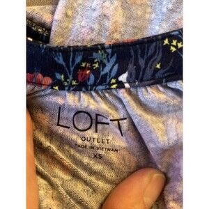 Loft Womens Blouse Sz XS Floral Trim Popover Mid Button Sleeveless Botanical