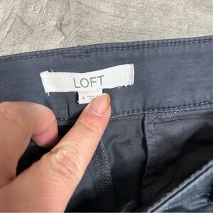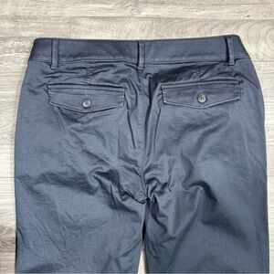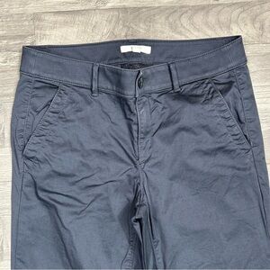 FEATURES: Women's blue gray pants. Pants have button and zipper front closure, belt loops, and side and back functional pockets.