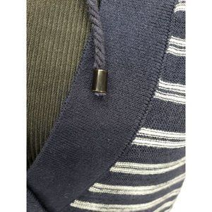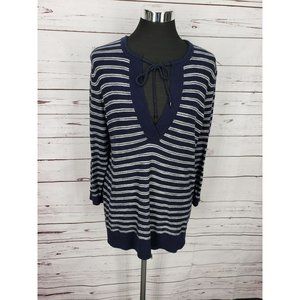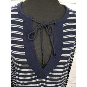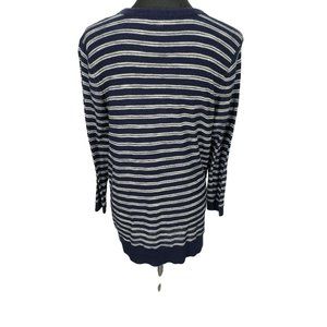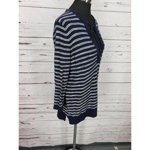 Loft Women's Blue Gray Striped Pullover 3/4 Sleeve See Through Shirt Size Large