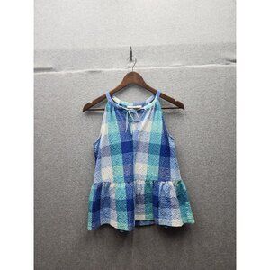 Loft Womens Blue & Green Plaid Sleeveless Peplum Top XS