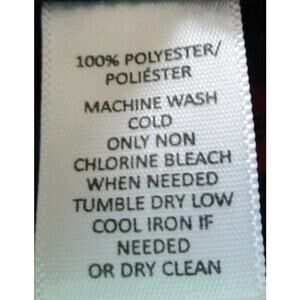 The material is 100% polyester and it is machine wash. Made in Indonesia.
