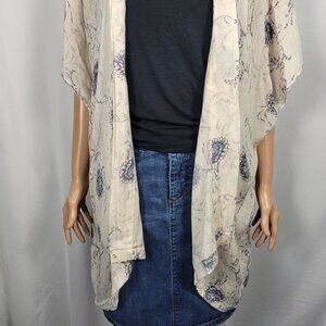 Loft Women's Blush Pink With Blue Floral Pattern Sleeveless Open Kimono Size M/L