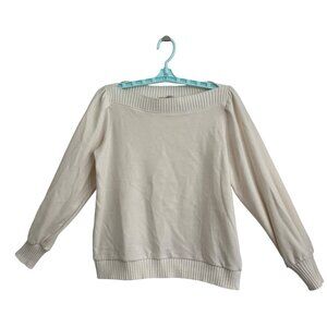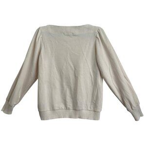 Loft Womens Boat Neck Sweater Medium Cotton Blend Cream Preppy Academia Coastal