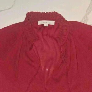 Loft Womens Boho Long Sleeve V-Neck Blouse Cherry Red Size Small