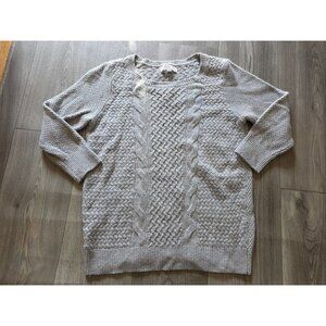 Loft Womens Cable Knit Sweater L Cotton & Wool Blend Gray