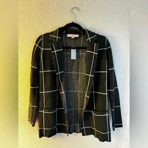 Loft Women’s Cardigan, Size: XXS, Color: Grey with white plaid stripes. NTW brand new condition.