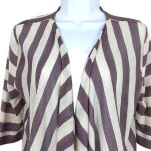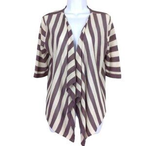 Loft Women's Cardigan Deep taupe & cream striped open front size M