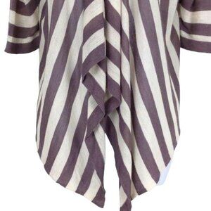 Deep taupe & cream striped waterfall open front cardigan.