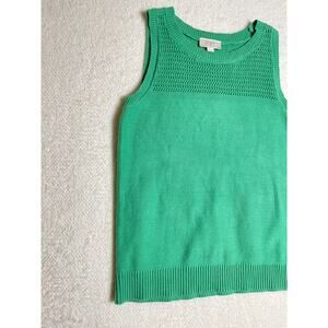 Loft Women's Coastal Grandma Quiet Luxury Chic Cable Knit Top Vest Green XS