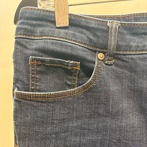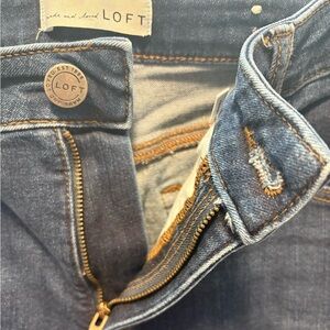 Loft Women’s Dark Denim High Rise Fringe Raw Hem Curvy Denim Jeans | Size 10