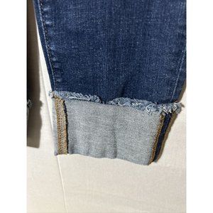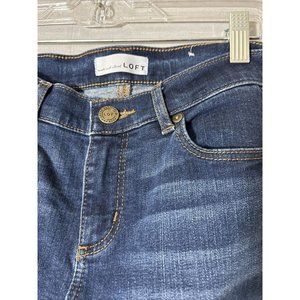 Loft Women’s Denim Jeans Pants For Modern Straight Dark Wash Fold Hemline Capri