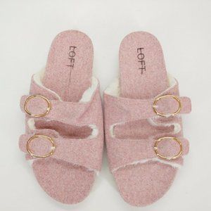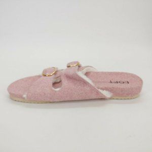 Loft Womens Double Strap Faux Fur Buckle Sandals Cotton Candy Pink 9-10