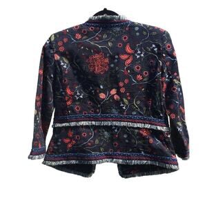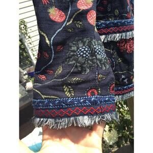 Loft Womens Embroidered Tapestry Jacket Size 0 XS Gypsy Strawberry Fairy Garden