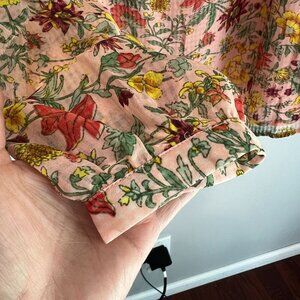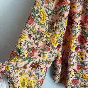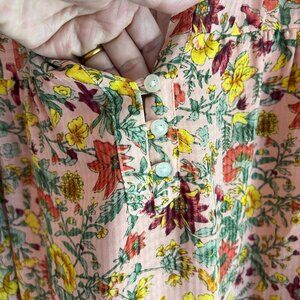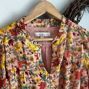 Loft Womens Floral Boho Henley Long Sleeve Chiffon Blouse MEDIUM Pink