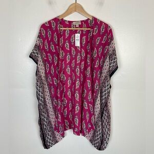 Loft Women's Floral Duster Kimono Size XS Pink Oversized Beach Coverup Summer