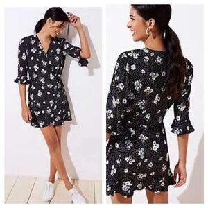 Loft Women’s Floral Polka Dot Wrap Romper Dress Size 4 Flutter Ruffle Boho