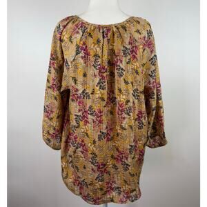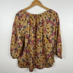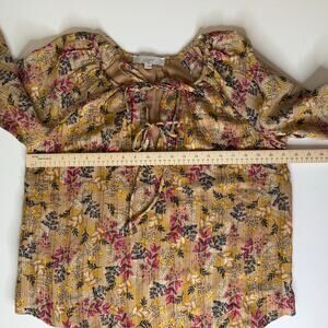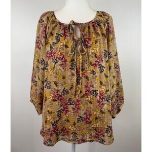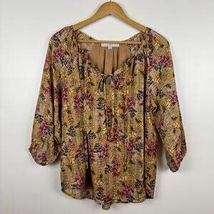 Loft Womens Floral Tie Neck Blouse in Amber Sz M Office Boho Casual Peasant Fall