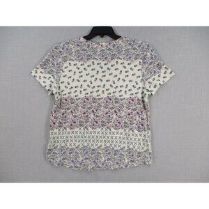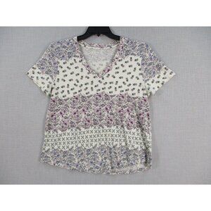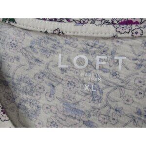 Loft Womens Floral Vneck Short Sleeve Cotton Top Xl Multicolor Pattern