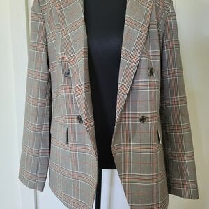 Loft Womens Gray Plaid Double-Breasted Blazer