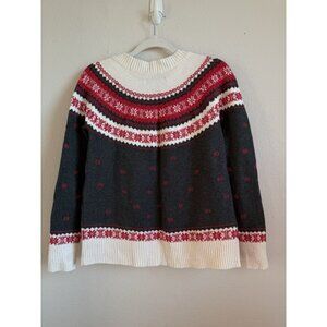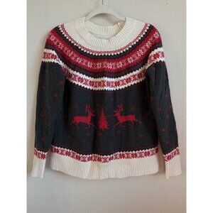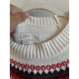 Loft Women’s Holiday Pullover Sweater Reindeer Fair Isle Petite Large Red Gray