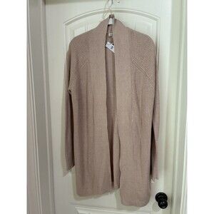Loft Womens LARG Long Tan Camel Cardigan Sweater Open Front NWT