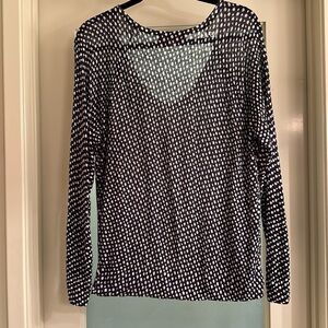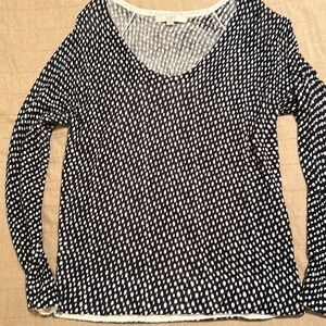 Loft Women’s Lightweight Scoop Neck Polka Dot Linen Blend Sweater Size M Navy