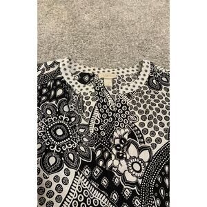 Loft Women's Long Sleeve Black and Cream Flower Tunic Blouse size Small