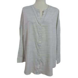 Loft Women's Long Sleeve Heather Grey Ivory Button Up Relax Fit Office Sz Small