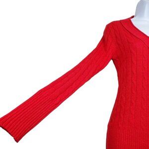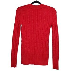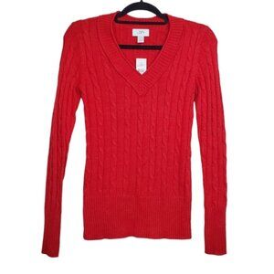 Loft Womens Long Sleeve Red V-Neck Wool Blend Cable Knit Sweater Size XS NWT