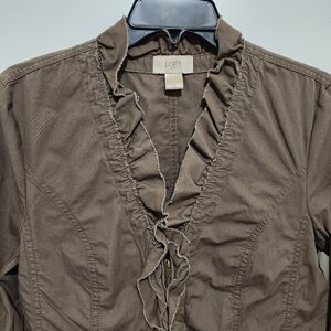 Loft Women's M Brown Ruffle Zip Front Unlined Cotton Jacket Goblincore