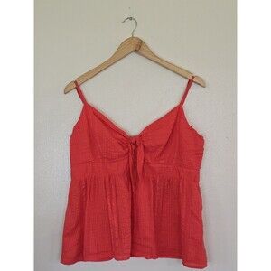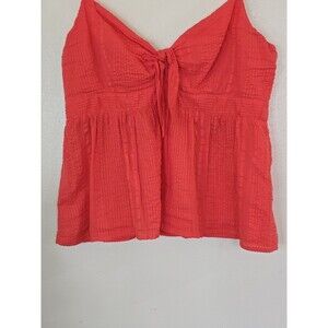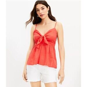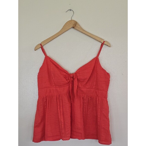 Loft Womens Medium Coral Red Tie Front V Neck Cami Tank Top Blouse Flowy Swing