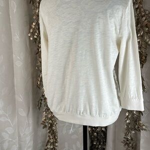 Loft Women’s Medium Ivory Lace Crochet Front 3/4 Sleeve Pullover Top Boho Casual