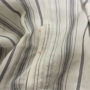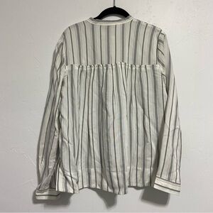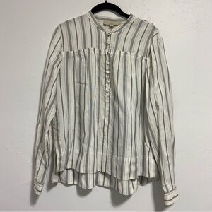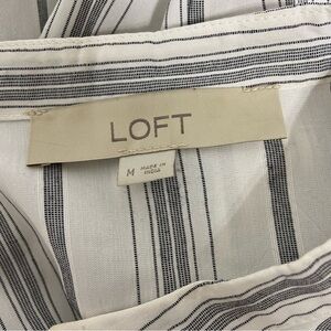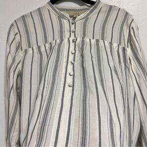 Loft Women's Medium Top Blouse Shirt Striped Gray Off White Long Sleeve