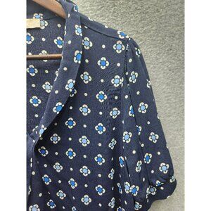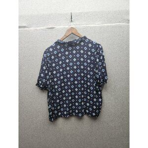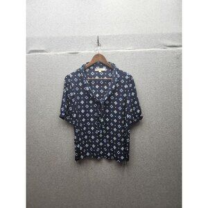 Loft Womens Navy Floral Blouse L Short Sleeve 100% Rayon