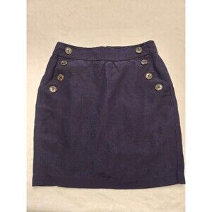 Loft Womens Navy Linen blend Knee Length Straight Skirt Sz 2