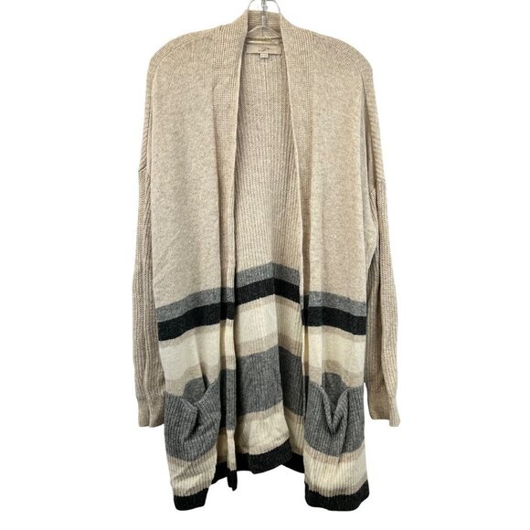 Loft Womens Open Front Knit Sweater Beige/Multi Vented Sides Pockets Size XL