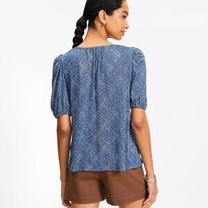Loft Women's Paisley Puff Sleeve Split Neck Top XS NWOT