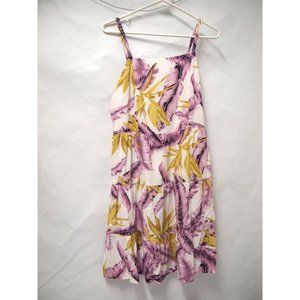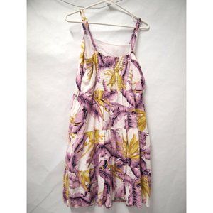 Loft Womens Paradise Tiered Mini Dress 6 Hawaiian Purple Palm Leaves Tent