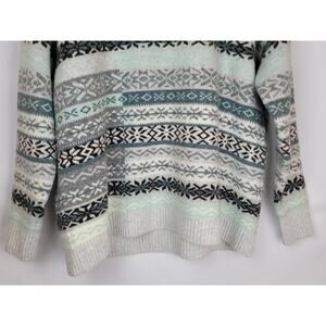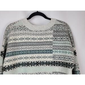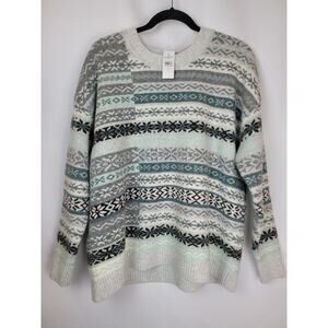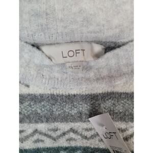 Loft Women's Patchwork Fair Isle Sweater Blue Teal Gray Brown Ivory Size XXL
