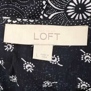Loft Womens Peasant Blouse Large Navy White Floral Tasseled Cottagecore Boho
