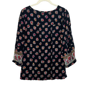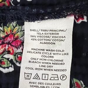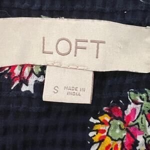 Loft Women's Peasant Blouse Size Small Navy Blue Floral Crinkle Fabric Tasseled