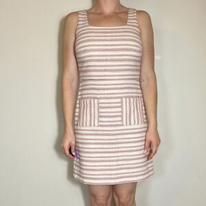 Loft Women's Pink White Gold Striped Textured Pocket Sheath Dress Size 4