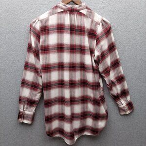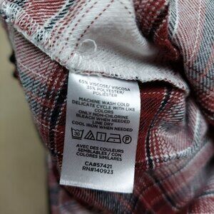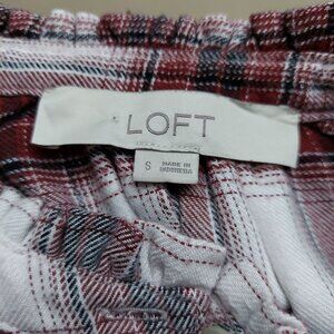 Loft Womens Plaid Button-Up Shirt Small Red & White Viscose/Polyester Made In In