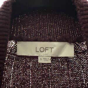 Loft Womens Plum Open-Front Cardigan Sweater Textured Ribbed Knit Size Small