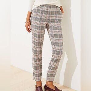 Loft Women's Preppy Pink Blue White Plaid Curvy Slim Career Ankle Pants 8 Academia