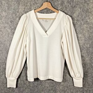 Pre loved Loft Womens Puff Sleeve Pullover Sweater Fluffy Soft Winter Ivory Size Small.