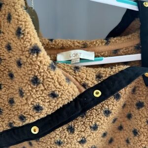Comfy and chic Loft pullover. Diagonal buttons/collar.