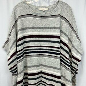 Loft Womens Pullover Sweater Multicolor Striped Poncho Short Sleeve Cotton XS/S