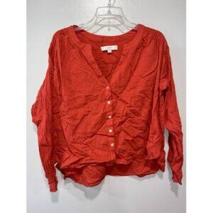 This red Loft blouse, crafted from 100% cotton, offers a comfortable fit for casual wear. Its vibrant color and relaxed design make it a versatile addition to any wardrobe.